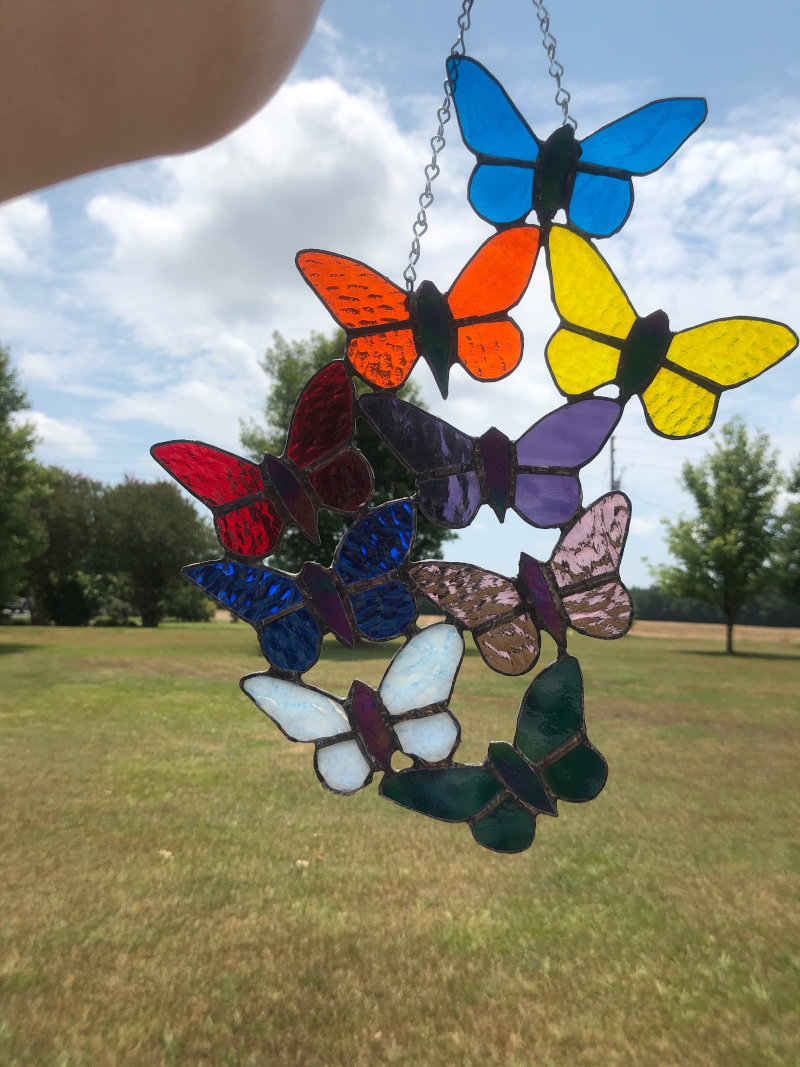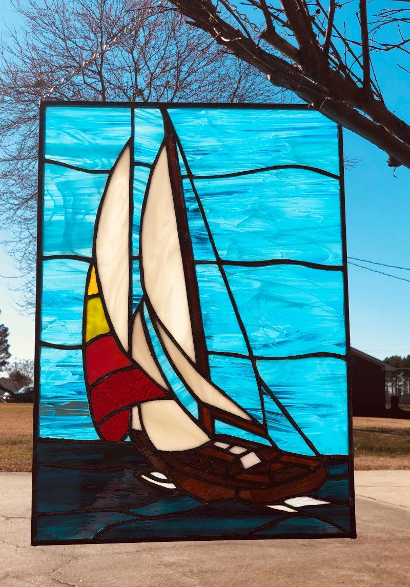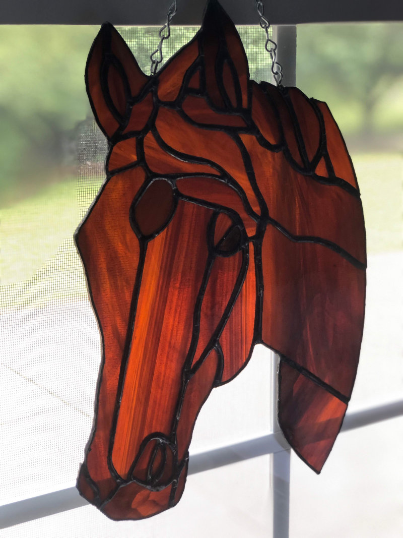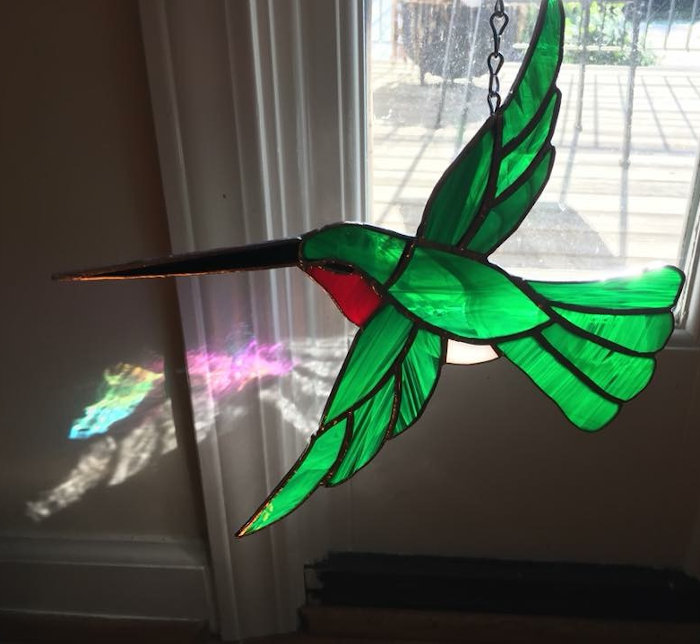 Each design is a unique piece. No two pieces are exactly the same. I take each idea and create a template, pick out and shape each piece of glass, foil them and solder. The special ingredient to each piece is the love that I put into them. Check out my portfolio.